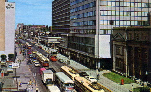 Looking east across Holt Renfrew and the so-called Mink Mile, 1960s