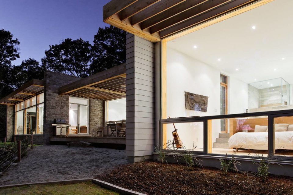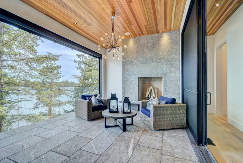 This Muskoka cottage is made almost entirely from granite, marble, charred cedar and walnut, has LED lighting and heated floors throughout, and almost every bedroom has its own private ensuite and walk-out deck. Anyone looking to upgrade from the standard campfire can do so on the sheltered outdoor balcony, which comes with a wood-burning fireplace and a 007-worthy button you can push to lower screens when the bugs come out. If you need a reason to extend happy hour, there's a full wine cellar and a bar area in the basement.