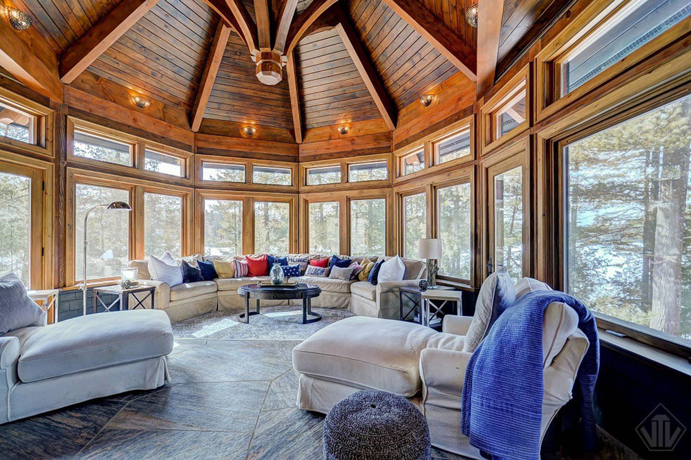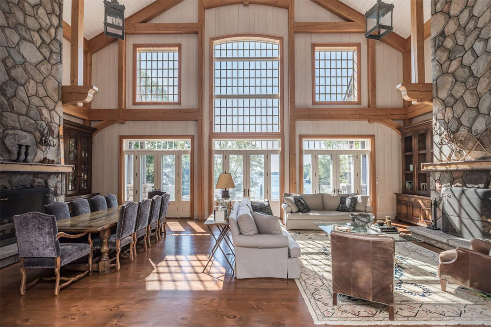 This Lake Joe cottage is seriously grand but still packs in plenty of rustic Muskoka charm with its two-storey stone fireplace and wood-panelled ceilings. If you're planning on hosting a lavish get-together, there's no shortage of space to entertain, including a 12-person dining room table, a fire pit, a hot tub and a massive sun deck off of the boathouse that could accommodate the wildest of dance parties (and if the weather turns, there's always the option to retreat to the basement rec room, which has a billiards table and wet bar). The most extravagant feature though, is the gazebo-inspired Muskoka room. It's lined with couches that look so comfy people will have to be hauled out of them after cocktail hour.