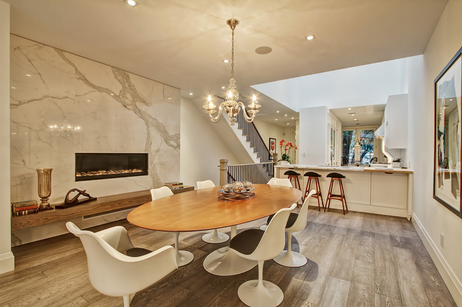 Living & dining are on 2nd floor. Dining has gas fireplace & porcelain slab wall.