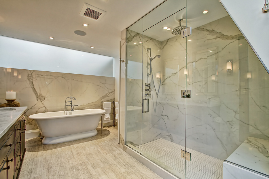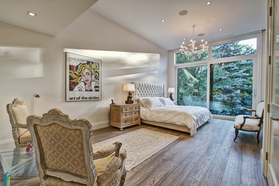 Big Selling Point: The 960-square-foot master suite spans the entire length of the house. It has his and hers walk-in closets, a rain-head shower that could easily fit two (or six, if it's a party), a balcony in the bathroom and a 10-foot-wide row of floor-to-ceiling windows in the bedroom.