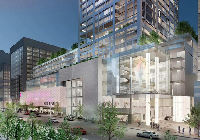 50 Bloor West, designed by Pellow + Associates Architects, has received approval but not without facing its own battles. Morguard Investments and Pensionfund Realty submitted an application to the City several years ago to develop the Holt Renfrew Centre on Bloor into a multi-level, mixed-use residential and retail complex. Plans for 50 Bloor West also include a much-needed underground parking garage with over 600 spaces.