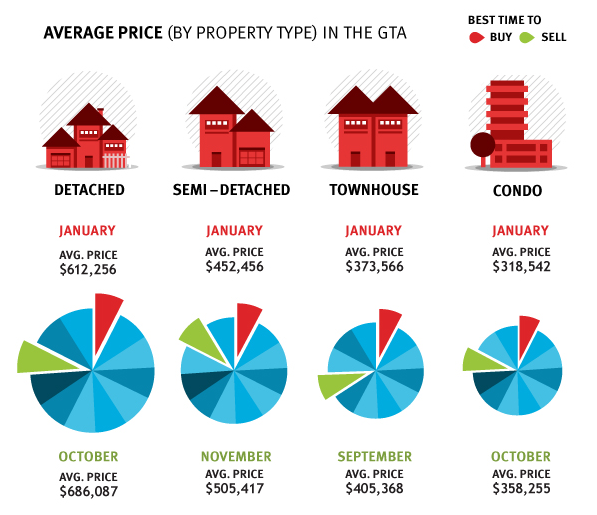 How many people really know the prime time to buy and sell their homes? We looked at all the data from the 2013 Toronto Real Estate Board's Market Watch Report and figured out the best overall times to buy or sell. January appears to be the best time to buy, while May is the best time to sell.