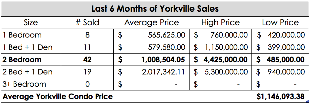 Take comfort in the fact that although volume is down considerably (and to be expected), the 6-month moving average price of a Yorkville condo has risen to $1,146,093: a 4.4% increase from the previous 6-month average. The masses aren't out buying Yorkville condos early January, but the one's that are certainly remain to pay the premiums for luxurious product in Canada's most prestigious condo market.