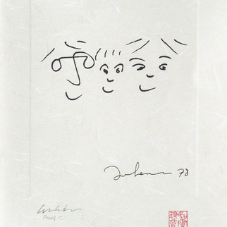 Let's Have a Dream, a sketch redone as a hand-pulled silkscreen serigraph print showing Lennon, Ono and son Sean standing together as a family, was done during a trip to Japan. In it, Lennon depicts himself with long hair and his trademark round-rimmed glasses.