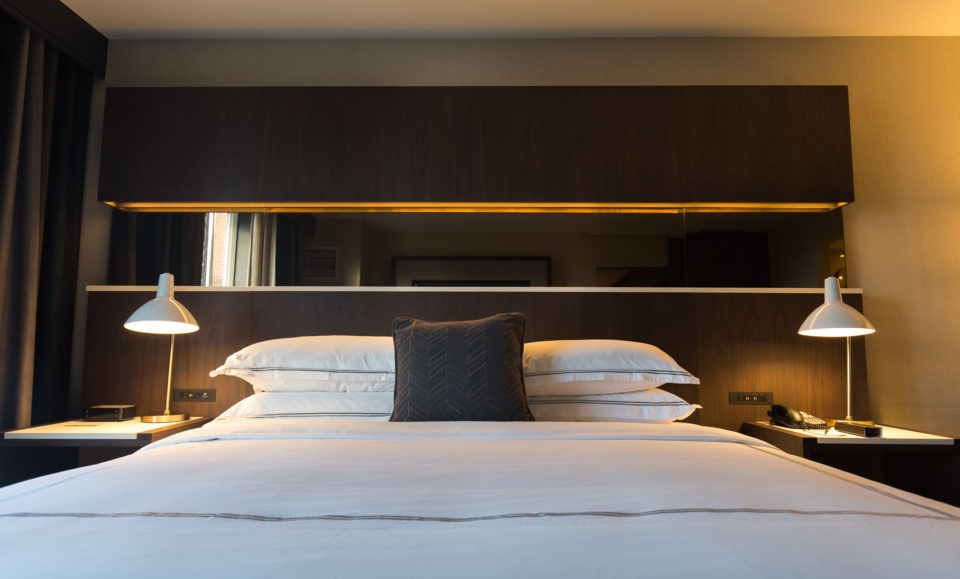 Eunoia Modern, an art consultancy run by Windsor native Narissa Villas, selected the art in the hotel. Most of the paintings are abstract, and she chose some pieces, like these by Paul Ngo, because they visually represent music (Koerner Hall is across the street):