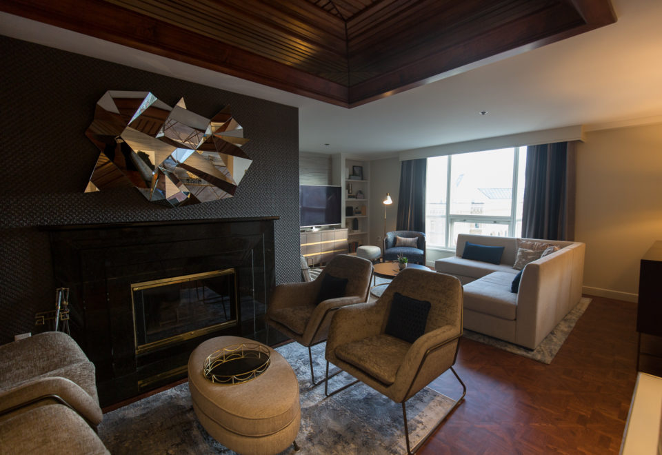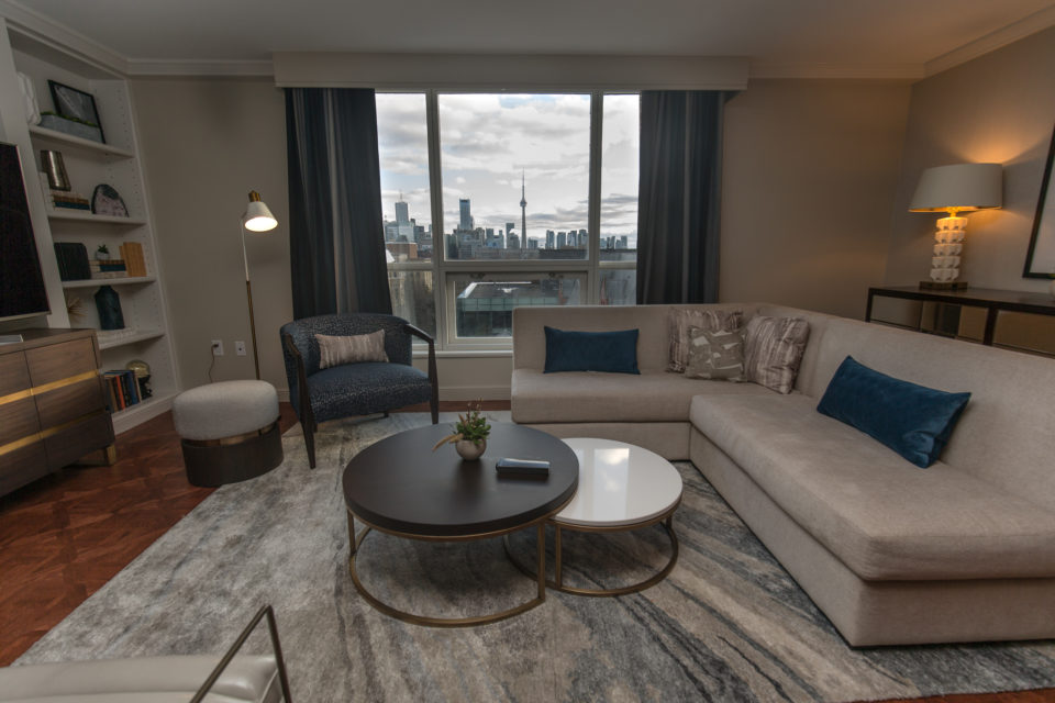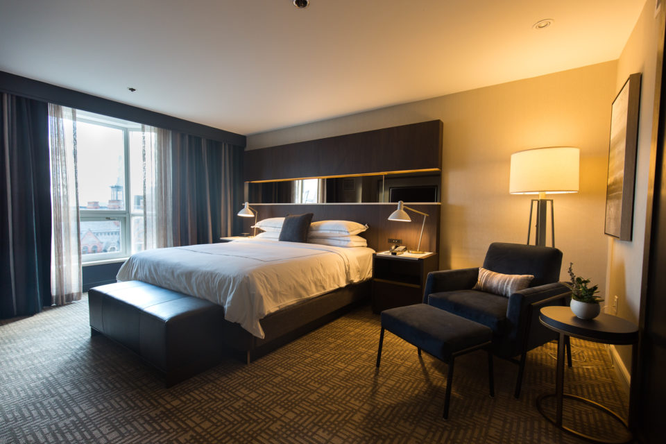 InterContinental chose the Atlanta design firm Sims Patrick Studio to oversee the makeover. The firm took inspiration from the hotel's location - it's proximity to iconic Toronto museums (the ROM and the Gardiner), the Royal Conservatory of Music and U of T - and brought in decore items to allude to these landmarks. Here's a closer look at the view: