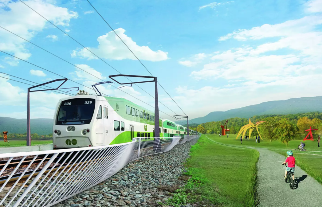 A 3.5 kilometre linear park running along both sides of the train tracks is also included in the plan, which would feature a sculpture garden, a marketplace, recreational trails and playgrounds.