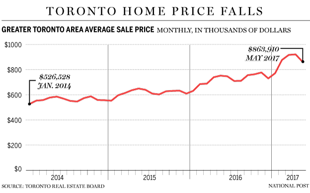 The province stepped in with its rule changes after March prices climbed about 33% on a year-over-year basis, a point that now appears to have been the peak of the housing market in the GTA.