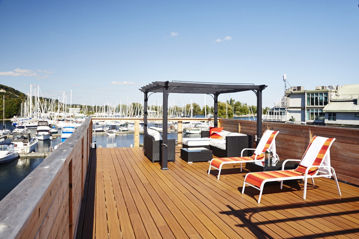 - Can dock up to 20' boat along front deck